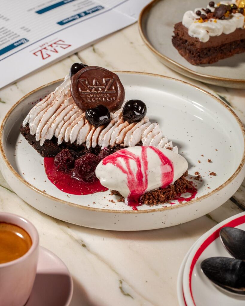 A classic reimagined with rich layers of maraschino cherry, silky dark chocolate ganache, and a light crème chantilly that makes every bite indulgent yet elegant.