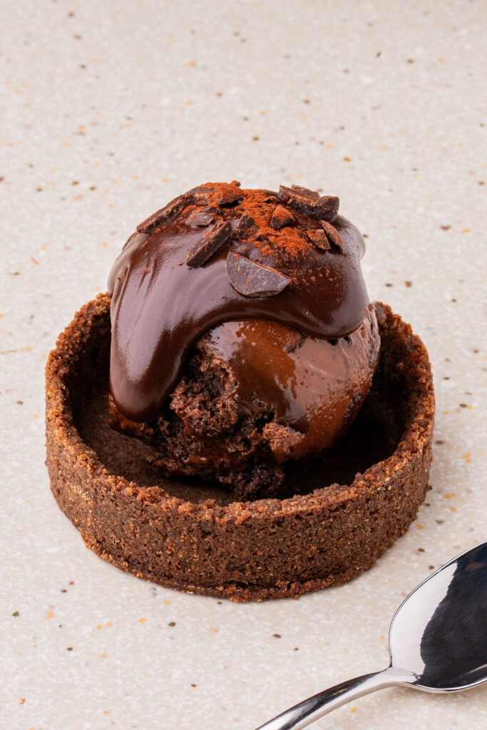 A decadent indulgence with a molten chocolate center infused with masala chai and wrapped in a delicate baked crust, this warm, gooey delight is made for true chocolate lovers.