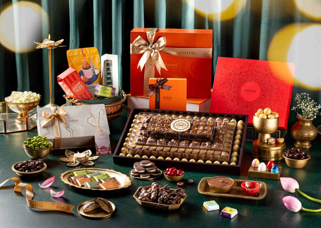 Entisi invites you to illuminate hearts and homes with its exquisitely curated hampers, designed to make every celebration truly unforgettable. From indulgent Joy and Delight baskets filled with luxurious chocolates and rich hot chocolate to elegantly presented Heritage, Classic Duo, Grand Celebration platters, and Ritual Boxes featuring macarons, artisanal spreads, chocolate slims, and handcrafted diyas, each hamper blends the warmth of tradition with modern indulgence. Perfect for festive gatherings or thoughtful corporate gifting, Entisi hampers transform every gift into a moment of joy and connection, reflecting the essence of Diwali — light, abundance, and togetherness.