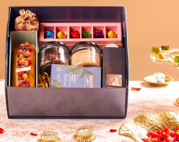 Wild Date brings the perfect blend of health, flavour, and indulgence with its thoughtfully curated hampers. Founded by Siddarth, the clean-label snack brand offers treats made with 100% natural ingredients — no preservatives, no added sugar, nothing artificial. From snack bars and cookies to granolas, each product is designed to be as tasty as it is wholesome. The festive hampers include gourmet selections like Peanut Butter & Chocolate Cookies, Hazelnut Granola, Cranberry Cashew & Almond Snack Bars, paired with test-tube teas, decorative diyas, and Diwali wish cards, making them the ideal gift for mindful celebrations.