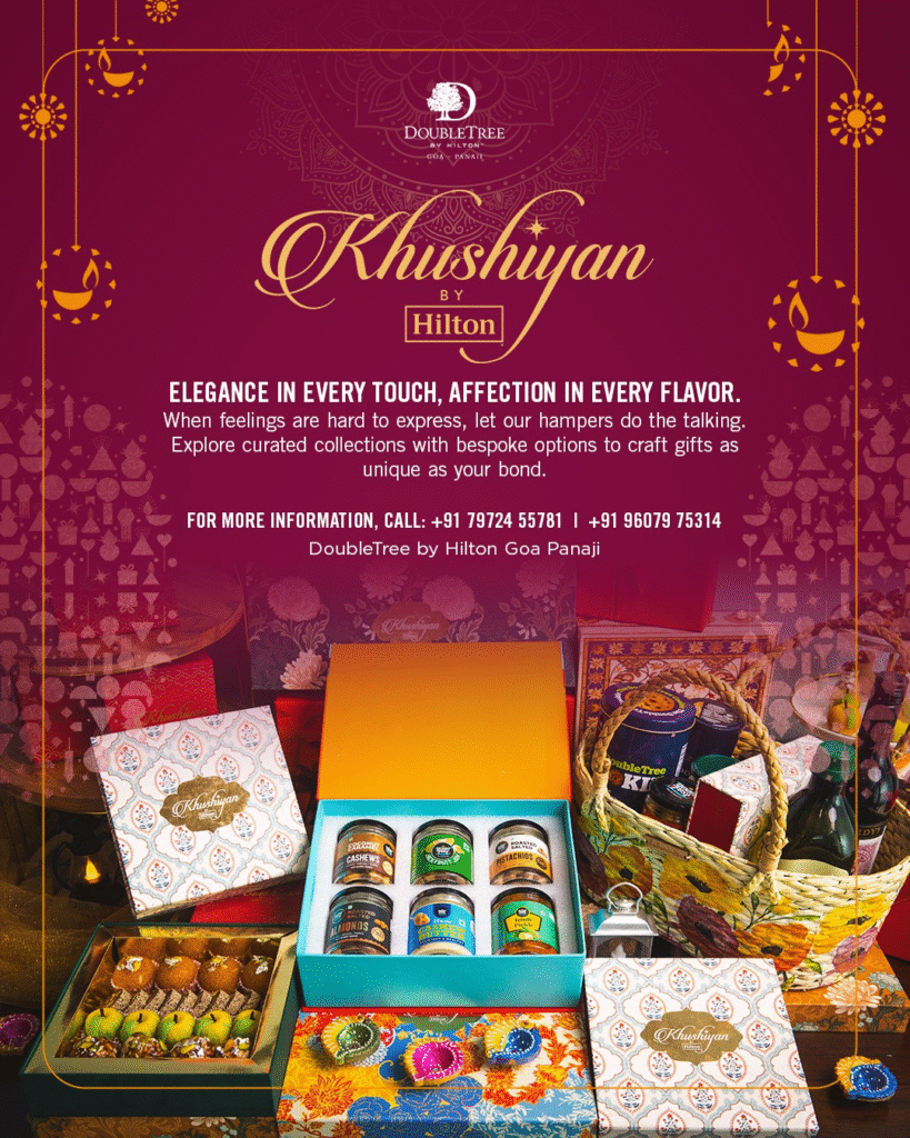 DoubleTree by Hilton Goa – Panaji invites you to honour the spirit of togetherness with Khushiyan by Hilton — a collection of luxurious and thoughtfully crafted gift hampers. Filled with gourmet delights and bespoke assortments, each hamper is designed to express love, warmth, and refined celebration. Whether you’re gifting family, friends, or business associates, Khushiyan offers choices as unique as your relationships — elegant, heartfelt, and unforgettable. From artisanal treats to indulgent flavours, every box is a tribute to connection and shared joy. Because when words fall short, a Hilton hamper says it all.