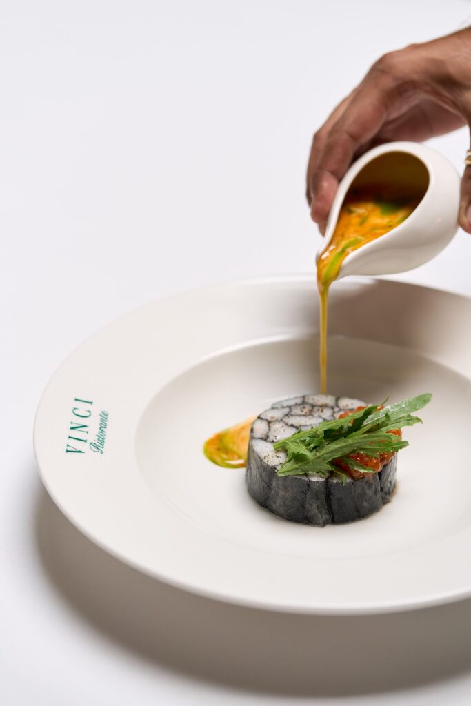 Vinci Ristorante opens at DLF Emporio, bringing modern European luxury dining to the capital. The intimate 48-seater space features plush banquettes, emerald accents, and a canopy-topped bar for a refined dining experience. The menu highlights Saffron Pappardelle XO Lobster, Truffle Crème Risotto, Pistachio-Crusted Lamb Chops, Fresh Truffle Pizza, and Tiramisu Drawer, complemented by fine wines, premium spirits, and inventive cocktails. High tea and a new alfresco terrace add seasonal charm.