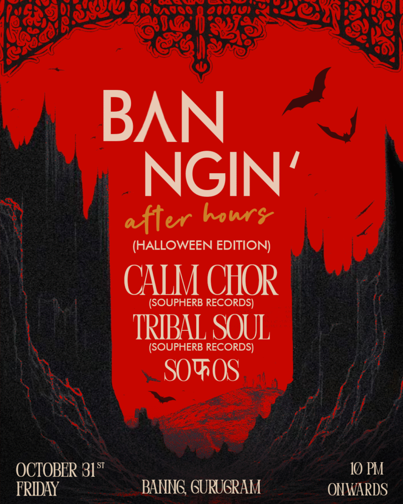 BANNG Gurugram transforms into a crimson-lit den of rhythm with BANNG’IN After Hours – Halloween Edition on 31st October from 10 PM onwards. Headlined by Ashwin Mani Sharma aka Calm Chor, along with Tribal Soul and SOफOS, the night promises dark, hypnotic house and electronic beats. Paired with BANNG’s signature cocktails and Thai bites, it’s a pulse-pounding after-hours escape inspired by Bangkok’s underground energy.