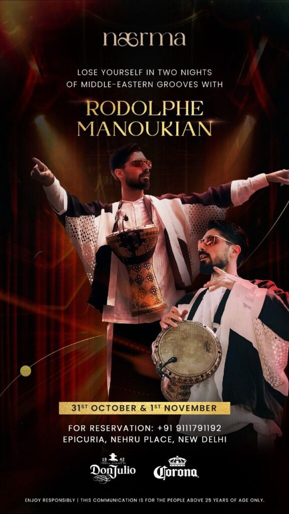 Naarma and Paradox present an unforgettable two-night performance by Lebanese-American percussionist Rodolphe Manoukian. Known for his viral darbuka sets blending Middle Eastern, Afro, and electronic beats, Rodolphe will transform Naarma into a rhythmic playground on 31st October and 1st November from 10 PM onwards. With bold flavours, spiced cocktails, and an intimate crowd, it’s where sound, spirit, and celebration collide.