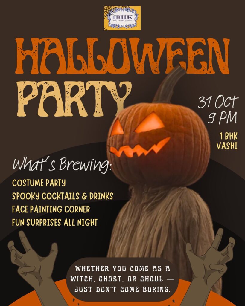 1BHK Vashi is turning up the chills and thrills with a spooktacular celebration on 31st October from 9 PM onwards. Get ready for a night packed with a costume party, spooky cocktails, a face-painting corner, fun surprises, and a DJ night that’ll keep you dancing till dawn. Whether you arrive as a witch, ghost, or ghoul, bring your spooky squad and get ready to own the night — because at 1BHK, this Halloween is all about wicked fun and unforgettable memories.