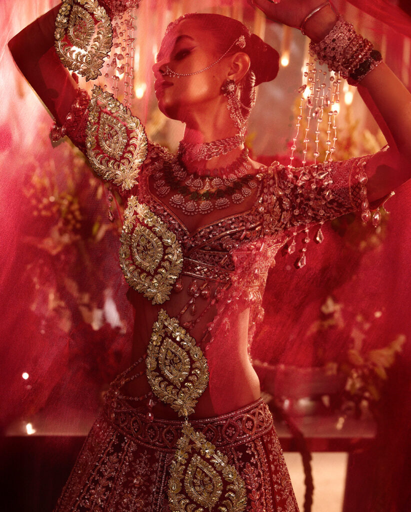 “Inaya really came from thinking about the modern bride and groom,” Manish explains. “Couples who cherish tradition but have a global outlook. More and more, couples are looking for contemporary design, for pieces that let them feel completely themselves. I imagined ensembles that move like poetry, carrying the weight of history without ever feeling heavy or dated.”
