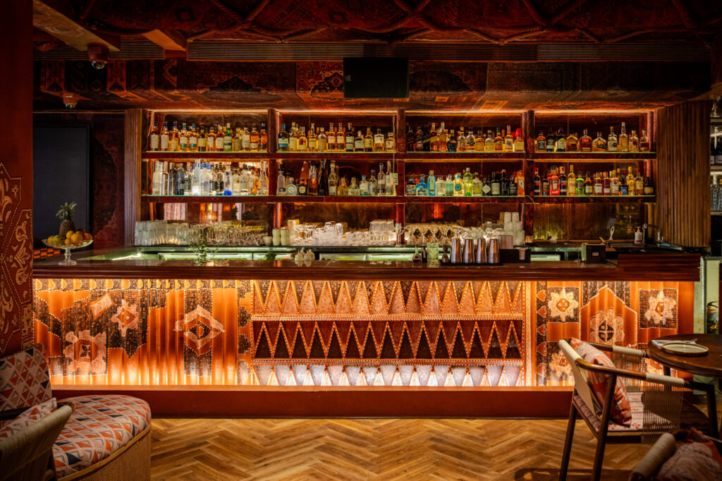 Designed by Gauri Khan, the space features a split-level bar, a moody ground floor wrapped in wrought-iron staircases, leading up to a mezzanine and triangular roofline. The beverage programme titled Sin & Scandal, draws inspiration from some of the most infamous controversies from around the world. On the other hand, the menu draws inspiration from the seven deadly sins, featuring a series of aperitivo-style dishes.