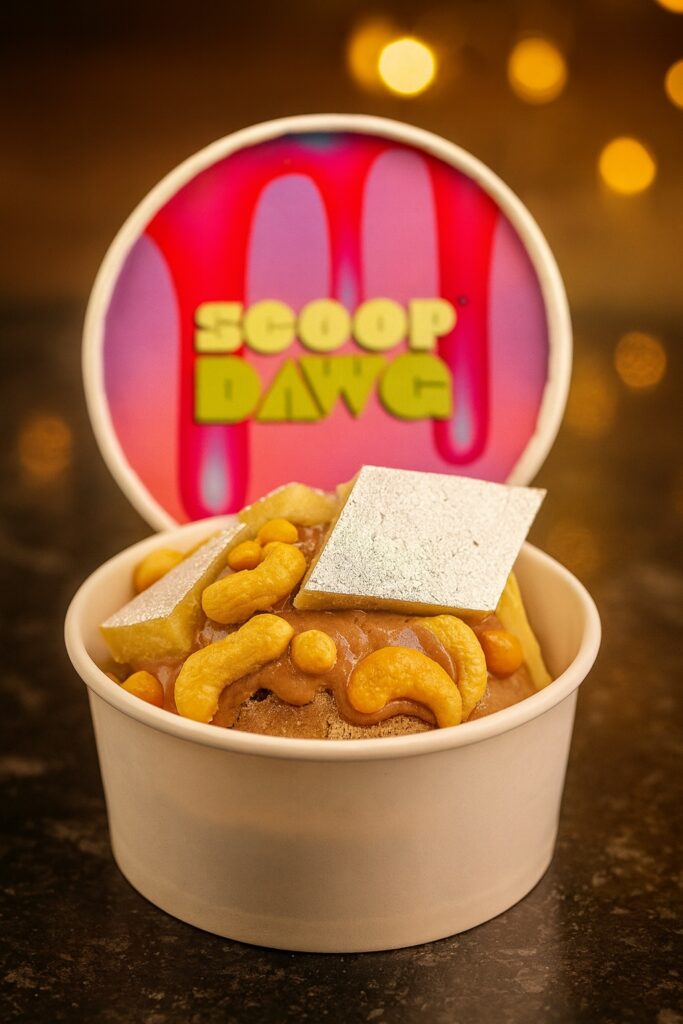 And then there’s Chennai’s Scoop Dawg, with Mithai Madness, a decadent blend of Belgian chocolate ice cream, buttery kaju katli, roasted cashews, and butterscotch bits. It’s what happens when nostalgia melts into modernity — sweet, cool, and unmistakably Indian.