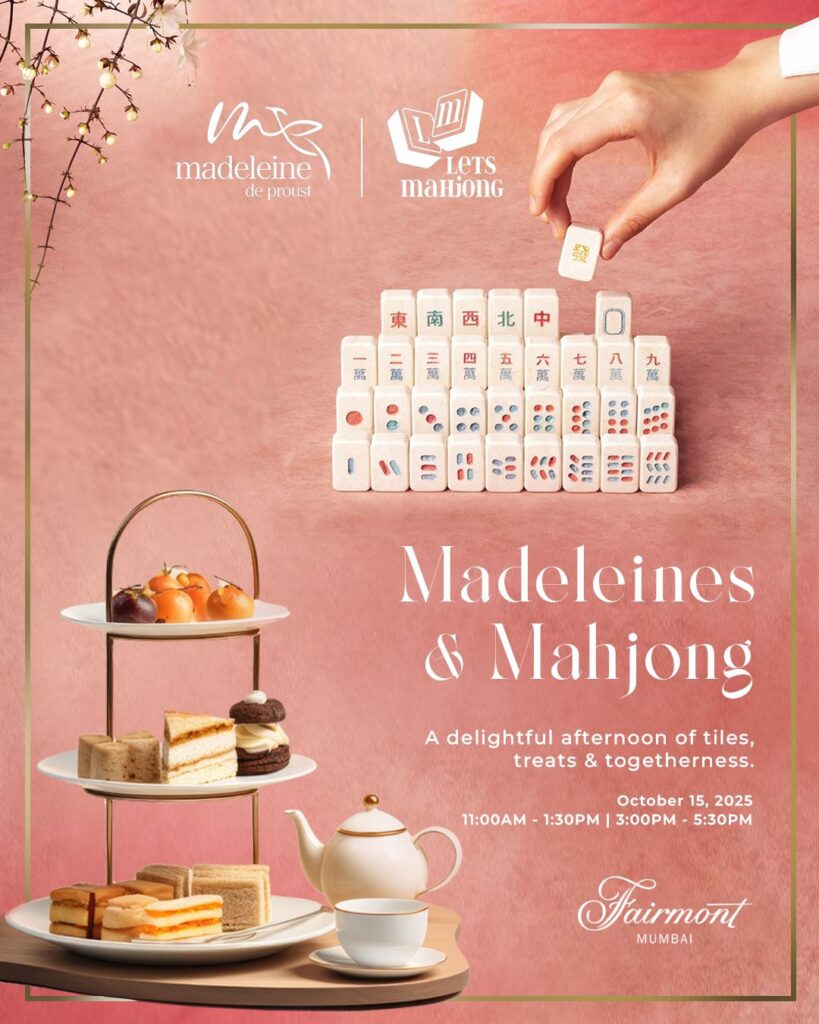 Fairmont Mumbai introduces Madeleines & Mahjong, a festive Diwali high-tea experience at Madeleine de Proust. Blending indulgence and play, the event combines artisanal madeleines and savoury bites with guided Mahjong sessions in an elegant Art Deco setting. In partnership with Lets Mahjong, the afternoon features two sessions on 15th October 2025 — a Learner’s Session from 11 AM to 1 PM for beginners, and a Player’s Session from 3 PM to 5 PM for experienced guests. Expert hosts will lead the gameplay as guests enjoy the patisserie’s signature treats.