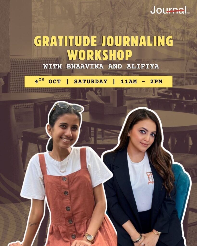 Journal, Santacruz’s creative café, hosts A Moment of Thanks, a gratitude journaling workshop on Saturday, 4th October, from 11 AM to 2 PM. In collaboration with psychologist Bhaavika Vachani and artist Alifiya Padghawala, the session blends mindfulness, psychology, and hands-on creativity. Participants will explore the benefits of gratitude journaling, followed by a guided activity to create personalised gratitude zines using colours, illustrations, and creative prompts. Guests can also enjoy Journal’s seasonal menu, including Overnight Oat Jars, Katsu Sandos, Asian salads, savory puffs, and specialty drinks like Jamun Coffee Tonic and Blue Pineapple Lemonade.