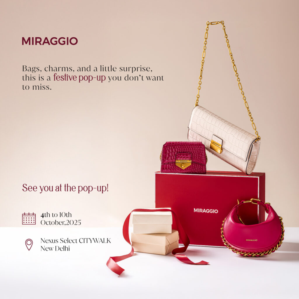 Miraggio presents The Invite, a new collection of handbags celebrating the vibrance and charm of the season. To mark the launch, a Gifting Concierge Pop-Up at Nexus Select CITYWALK, New Delhi, offers a luxe retail experience with complimentary personalisation, gift wrapping, and customisation. Guests can also enjoy interactive stations including a Nail Bar, Customisation Zone, Photo Op Spot, and Mirror Selfie with free Polaroids.