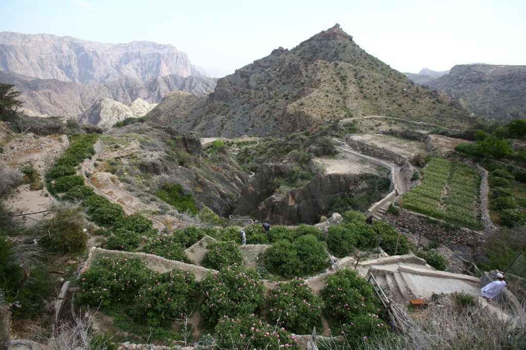 Rising over 3,000 metres above sea level, Jabal Akhdar Mountains make for the perfect escape from the city of Muscat, situated around 177 km away. The scenic road trip is usually under three hours but can only be done in a 4×4 vehicle as a rule. As we reached our destination, apart from the views, the very first thing we noticed was the sudden drop in temperature. We learnt that due to its high altitude and inland position, Jabal Akhdar is usually 10-15 degrees cooler than coastal Muscat. This microclimate makes it a much-preferred destination especially during the extremely hot summers.