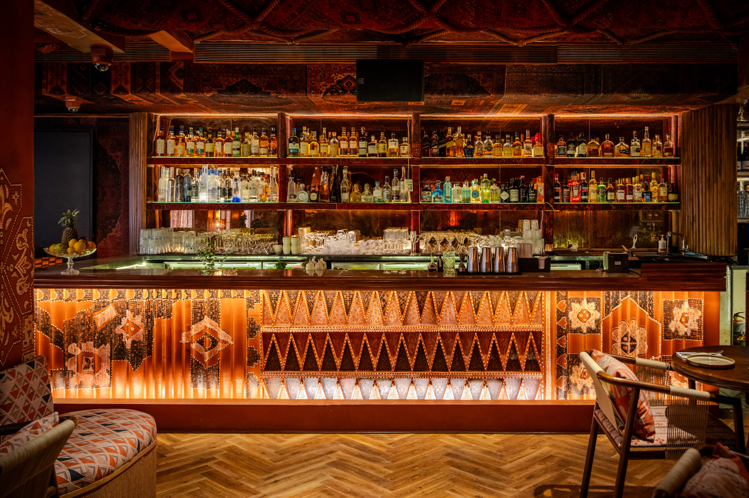 Before anything hits the table, the space already does half the talking. The interiors feel layered and thoughtful without trying too hard. There are earthy terracotta tones everywhere, broken up with hand-painted details, woven textures, and warm wood. Arched doorways gently divide the dining area, making the space feel intimate rather than sprawling. The lighting is soft and low, casting a glow that feels comforting and almost familiar, not dramatic, not staged, just right.