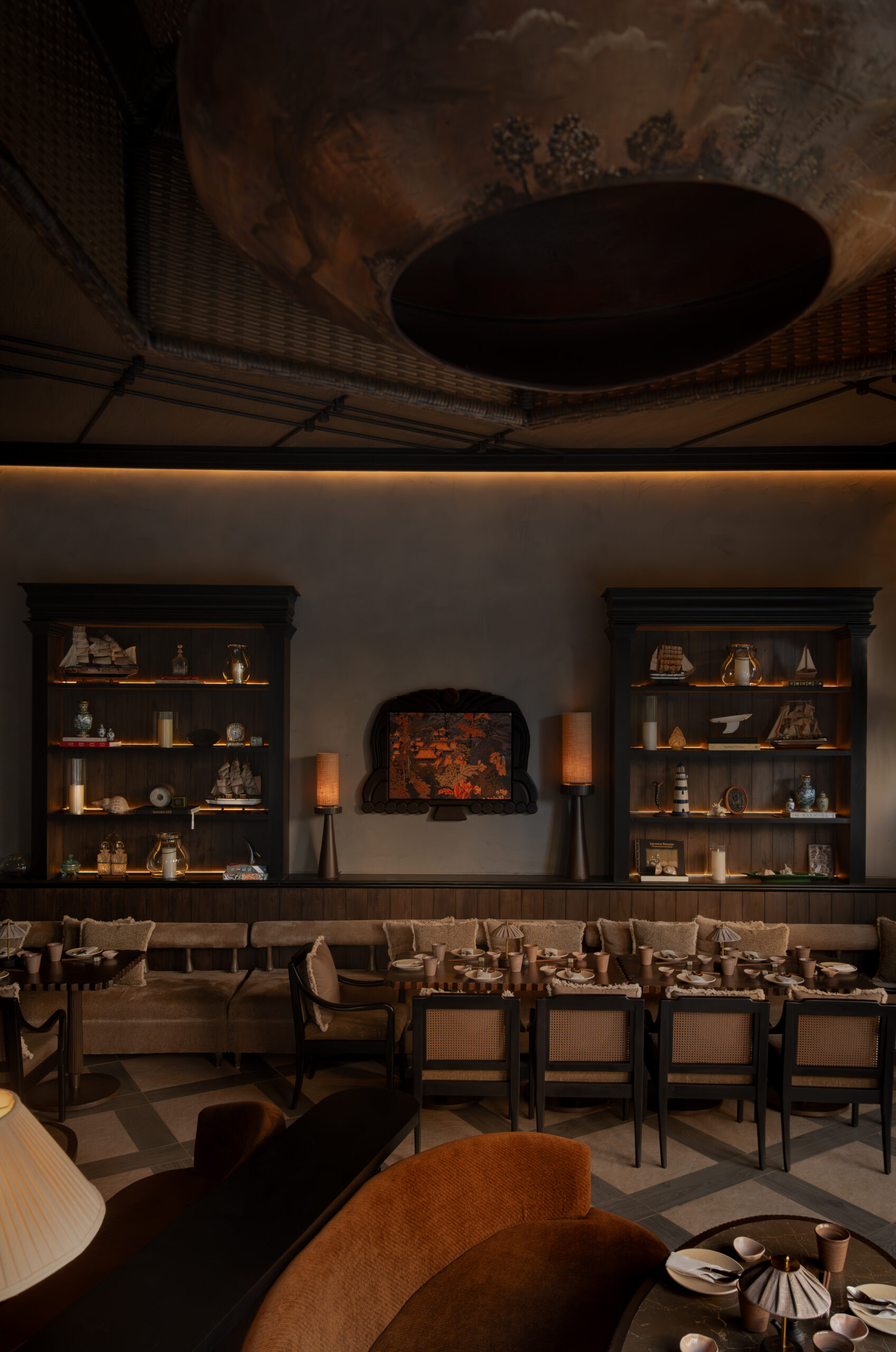 With glass doors and panels, the indoor and outdoor space blend seamlessly. A long, swanky bar with tall stools is the perfect place to start your evening. I notice how the seating for 120 has been divided between high tables, sofas, small chairs and the alfresco area, allowing you to choose your own setting, whether for a lively evening or a cosy corner. But when Johar is in the picture, how can there not be drama? The interiors by Aayushi Malik blend stone, wood and muted tones with Japanese themes — handpicked art, Kyoto-inspired wallpaper and shelves lined with books. Minimalist yet chic, it overlooks the zen garden in the alfresco space.