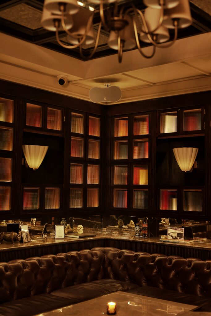 At first glance, Mr Button could easily be mistaken for a cosy London haunt with panelled walls, brass accents, and shelves lined with old books and curiosities that could very well have belonged to the bar’s fictional muse, Henry J. Button, including a well-maintained piece of Singer sewing machine. As I learned later, Henry J. Button is imagined as a rakish tailor from 1893 Savile Row, a man of wit, charm, and an insatiable love for wanderlust. His legend threads through the entire concept: a tailor who travelled the world, and this is his residence where tailoring, travel and indulgence intertwine.