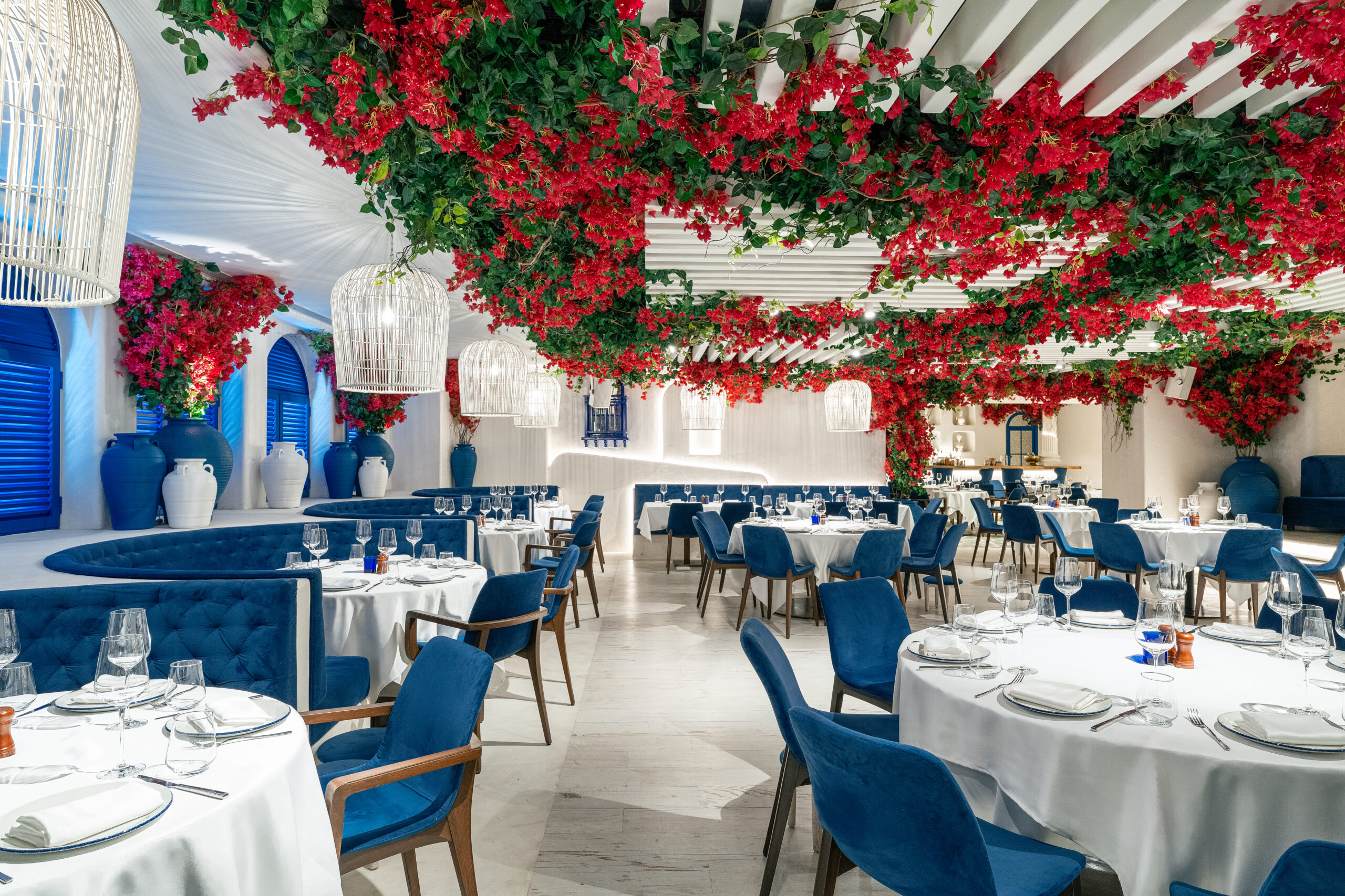From the moment you step into OPA Kipos, it’s a full sensory takeover. The Santorini-inspired interiors instantly transport you to whitewashed walls, deep blue accents, bougainvillea cascading from canopies, and that unmistakable island charm that makes you forget you’re in Mumbai. The space feels like a little slice of Greece right in the middle of the city radiant, lively, and buzzing with kefi (that joyful, celebratory Greek spirit).