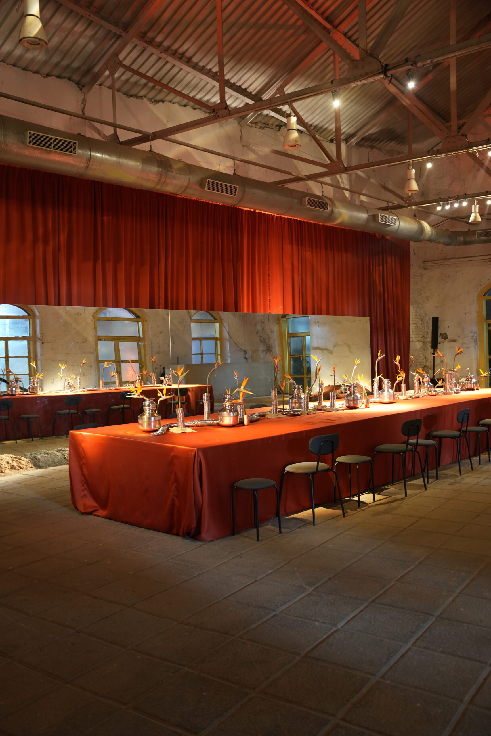 This is just one of the five chef and artist-led pop-up restaurants that you can experience at The Gathering. After debuting in Delhi last year, the second edition comes to Mumbai, reimagining the heritage Mukesh Mills in Colaba as a multisensory backdrop for food, art, ideas, and performance. Sushmita Sarmah, founder and festival firector of The Gathering says: “Each edition is a once-in-a-lifetime experience, never before, never again. This is where we come together to celebrate our shared stories through flavour, art, and ideas.” The restaurant pop-ups are anchored around three curatorial ideas: the Conservators, Chef Niyati Rao (Ekaa, Bombay Daak, and more) and couturiers Abraham & Thakore translate India’s textile traditions into a sensory dining experience where a pachadi served on a bed of mogra channels the white and gold of Kerala’s Kasavu while Maharashtra’s vibrant Paithani finds expression in a Bombay sandwich sorbet with kokum gel.