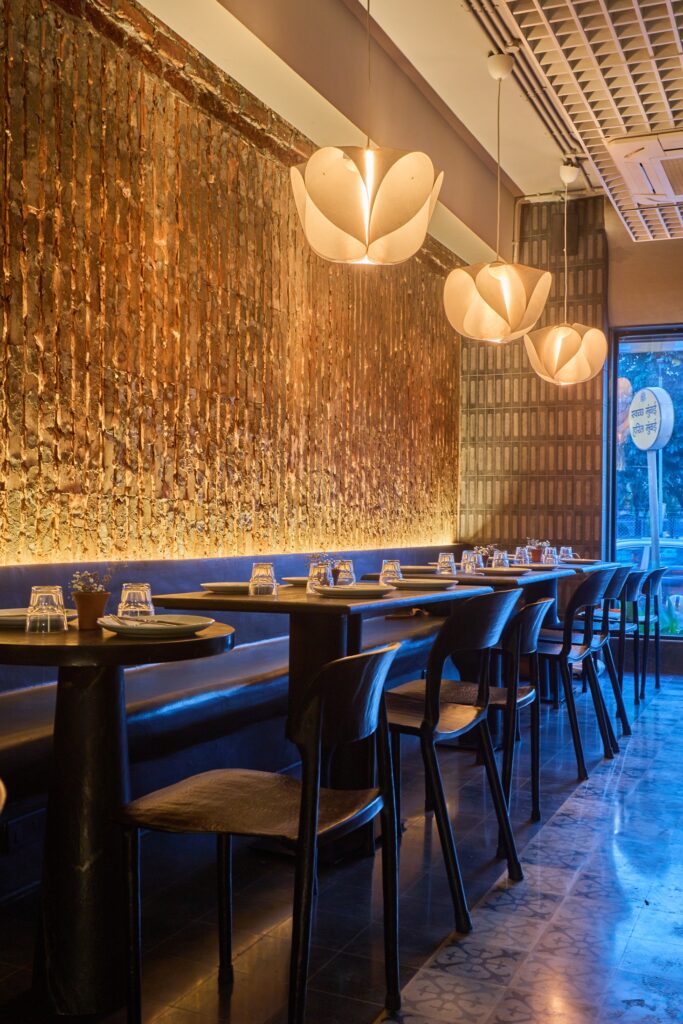 The Nutcracker Breach Candy is housed where once stood the iconic Sun restaurant. While people miss the pure veg establishment’s malai koftas, paneer tikka masala, kebabs and curries, Annie feels she has to take forward the legacy with her venture and honour that nostalgia. During the renovations, they peeled a layer off one of the walls and found behind it a vertical brick wall — a rare architectural element to find in Mumbai now. Tejal Mathur (of Tejal Mathur Design) and Annie decided to retain and restore it as a brick-exposed wall as a nod to the heritage. Now, it is central to their design.