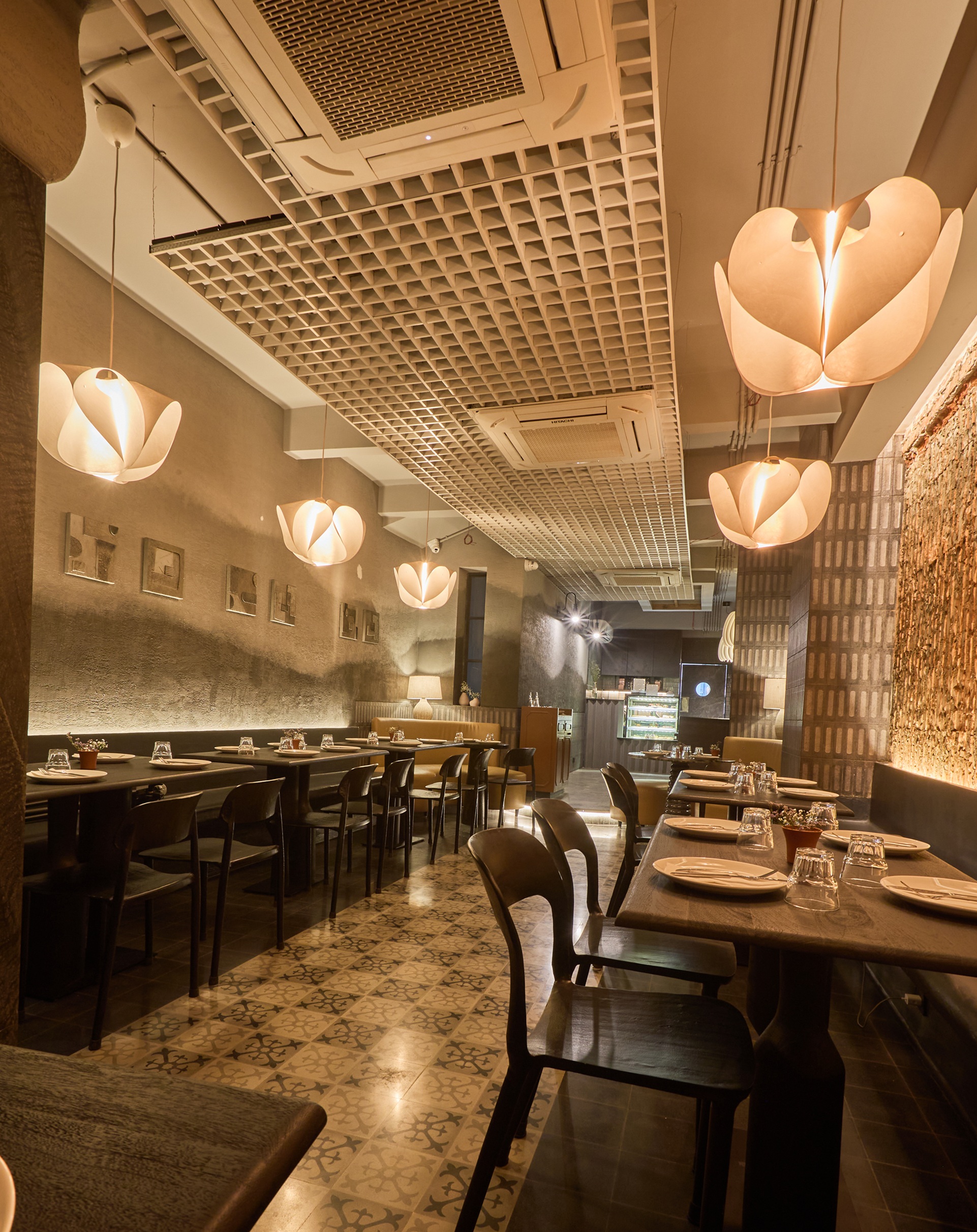 Every Nutcracker outpost looks different. This one boasts graphite-hued tabletops — each with a pair of bottle-shaped legs; hand-painted walls; patterned tiles; metal papier-mâché-coated lamps, and an artificial sunroof that is geo-tagged to mimic the light outside depending upon the time of day. All rustic, yet so playful. A large glass window reaffirms your presence in SoBo’s upscale neighbourhood.