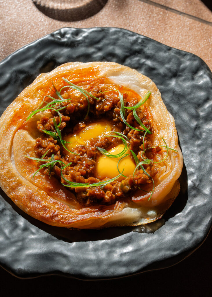 The flavours then pick up in textures and layers in Ayam Goreng, a deep-fried chicken, and Popiya, the Southeast Asian spring roll. Dishes like Roti Sarang with egg in the middle and meat around it coalesce into a star dish. But the real magic happens with mains like Black Pork Curry and Prawn Raw Mango Curry served with sides like Parotha and Jasmine Rice. The flavours don’t feel foreign because the ingredients are also very familiar to Indian palates. Comforting, homely is what I would describe it as.