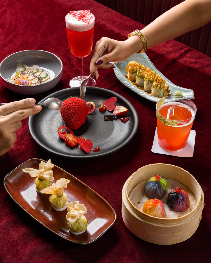 KOKO celebrates Valentine’s Day with Just Between Us, a thoughtfully curated evening designed for couples who prefer quiet connection over grand gestures. Tables dressed in carnations, ribbon-tied champagne flutes and handwritten postcards set the tone, while a shareable Asian menu moves from soups and salads to sushi, dim sum, Peking duck and indulgent mains, ending with the strawberry-layered Strawberry Dream dessert. Guests can pair the meal with a bottle of wine or a selection of signature cocktails, making it a slow, romantic night centred around conversation and togetherness.